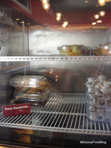 Head inside the double doors and you’ll be greeted by a small space bordered by baked goods and condiment counters. Look over the counter to your left, and you might see some Disney bakers making specialty items for one of the resorts, or even a wedding cake!