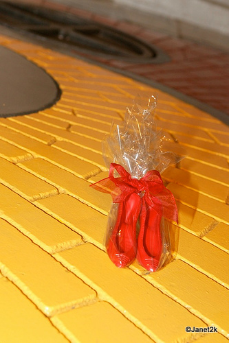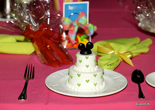Each place setting held a miniature wedding cake — with Mickeys of course, a small box of runts candy, and a pair of edible ruby slippers!