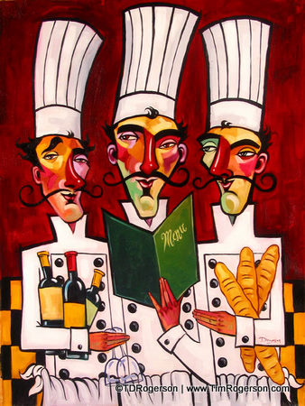 TR: 2010 will be Epcot’s International Food & Wine Festival 15th Anniversary. The hardest part is to create something bigger and better than the previous — especially when you put all your eggs into one basket with the first artwork. But I love a good challenge and focused on the idea of celebrating 15 years. After many drawings and different directions, I finally found the perfect concept. The artwork for 2010 will have eleven chefs, one representing each country, all raising their glasses and shouting, “Cheers, for 15 years!” as they march down the streets of World Showcase. The main chef in front will be carrying a birthday cake with 15 candles. And this piece also has a hidden Mickey.
