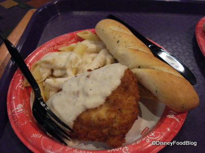 But my favorite meal at Pop Century, as you might know, is the chicken and pasta alfredo along with a big old cupcake. I’ve added a Mickey crisped rice treat just for you…