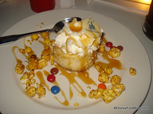 Both desserts were delicious. The cheesecake resembled the cheesecake at Mama Melrose’s restaurant (natch), and the apple crumble thankfully didn’t taste canned (unfortunately, that gooey, canned-apple taste has become an all-too-common occurrence in Disney’s apple desserts). Overall, we were happy with our Sci-Fi meal, but we knew what to expect. Some folks might find it too dark in here; others might find the movies to be too scary for some kiddos (they’re more cheesy than scary, but sometimes kids can’t tell the difference yet). Some people might prefer to eat their meals while NOT watching The Blob and/or Zombies. But, if you want a decent meal in an out-of-this-world setting, give Sci-Fi Dine-In a try. It’s like nothing you’ve ever experienced, I’ll promise that!