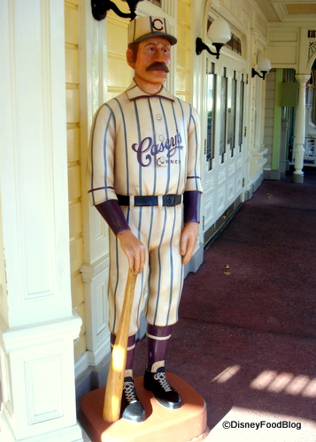 Casey’s is reminiscent of a bygone era full of that “take me out to ballgame” feeling, which goes hand in hand with our American obsession with Hot Dogs (the word Frankfurter seems to be used less and less). The inside is decorated with baseball memorabilia on shelves, and a statue of a Baseball player outside is simply identified as “Casey”. (Editor’s Note: Great history/theme post over at Designing Disney).