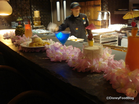 - Have a Drink: Grab yourself a giant wicker chair in the Tambu Lounge just past the ‘Ohana podium. Knowledgeable bartenders and friendly servers will cater to your whims as you relax and wait for your table. (One of my favorites is the Lapu Lapu…a drink served IN a pineapple!)