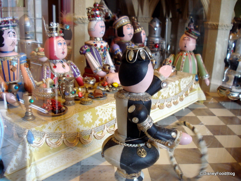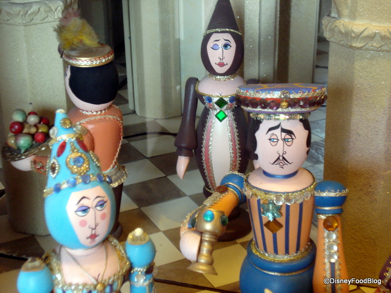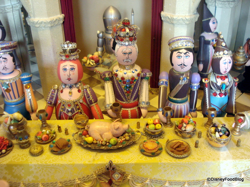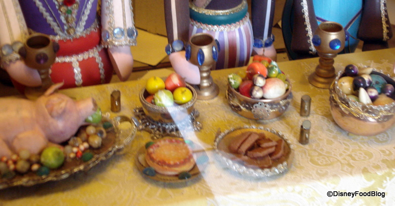 And he’s “rolling” in the true sense. The diorama is animatronic. You can watch the entertainer roll his hoop back and forth and even see the King and his male guests raise their glasses in what I can only imagine is a toast (since nobody seems to have touched their food, yet!). Interestingly, it is only the males raising their glasses… .