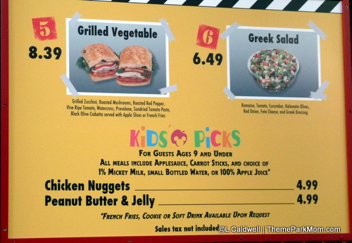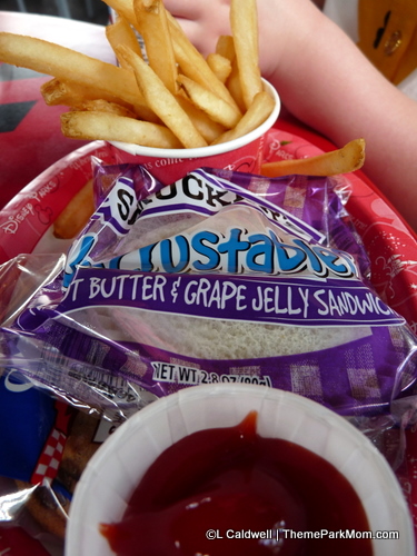 There were the two most usual choices at Walt Disney World for kids — chicken nuggets and a Smuckers Uncrustables PB & J sandwich. Gone are the chicken drumstick and chicken wrap kids used to be able to order here.