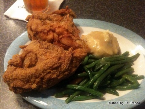 Amanda ordered a salad wedge; Suzannah: Dad’s Meatloaf, which I also recreated here on the Food Blog; and I opted for the Fried Chicken. I only enjoy white meat chicken, so Mandy said Mom would just give me two breasts. I am not sure if I paid more, but was happy they accommodated my preference.