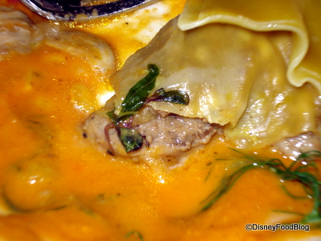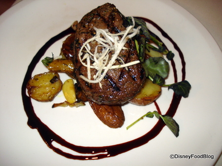 The pork was, as I usually find in fine Disney restaurants, outstanding. I could have eaten that dish for days at a time and never gotten tired of it. The meat was cooked perfectly (I ordered it medium rare), and the taste as coupled with the Black Diamond Chedder herb spaetzel (!!!!!!!) was out of this world. I’ve noticed that the menu has changed to exclude the Cheddar herb spaetzel at this time (now serving a bacon and potato hash), which is quite unfortunate, indeed.