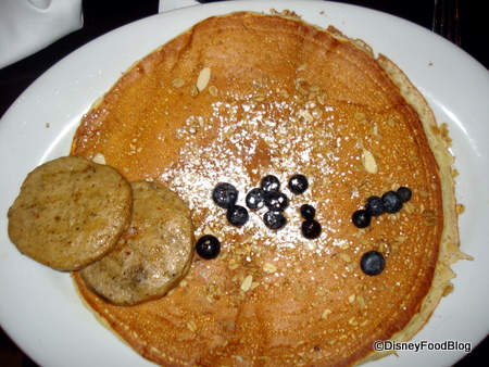 Our final morning was spent noshing on breakfast at Kouzzina, Cat Cora’s new signature restaurant on Disney’s Boardwalk. I ordered the blueberry-orange granola pancake with chicken sausage. What I received was this — a griddle cake about twice the size of my head! Delicious alone, the thing was even better when paired with warm maple syrup and a bit of butter — that tang of the blueberries with the bulk of the granola made the cake just the “something different” you’re looking for in a Disney breakfast.