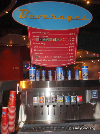 The first thing you’ll realize when choosing your food from the Pizza Port is that the space port themeing is reflected even in the menu. From Mars-inara with Meatballs, Venus Vegetarian pizza, and Celestial Caesar Chicken Salad to the “Space-ghetti” on the kids’ menu, ordering your food is going to make you feel like a kid again — like it or not. 😉
