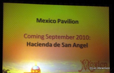 The food will be fresh, Mexico market-inspired cuisine. And although the restaurant will be run by the same off-site company that runs San Angel Inn inside the Mexico pyramid, I’m hoping the menu will be significantly different.