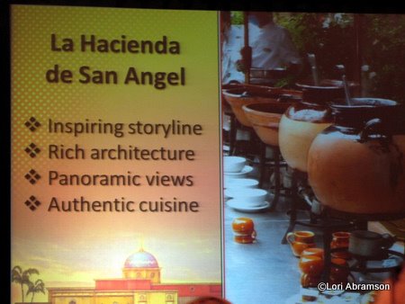 Whew! News-heavy week here at the Food Blog! Today, let’s look at some newly released info about Hacienda de San Angel, the newly renovated restaurant opening in September in Epcot’s Mexico Pavilion! Here are some great pics of the Hacienda de San Angel slide presentation given at the D23 Flowers and Fireworks event this past weekend. These were taken and donated by Lori Abramson — Thanks, Lori!