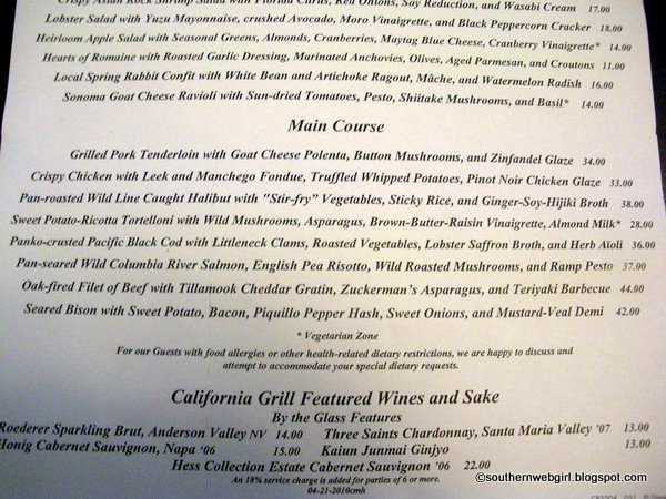 We snapped a couple photos while waiting to be seated. California Grill is a hip, modern, energetic restaurant –- it’s not romantic quiet, but it’s not nightclub loud either.