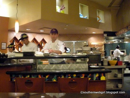 We were seated at a table close to the open kitchen. We liked the view and enjoyed watching the chefs cook and the servers interact with them. I marveled at the cleanliness of the kitchen and wondered how much work has to be put in daily to keep it in tip-top shape.