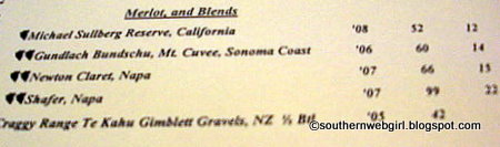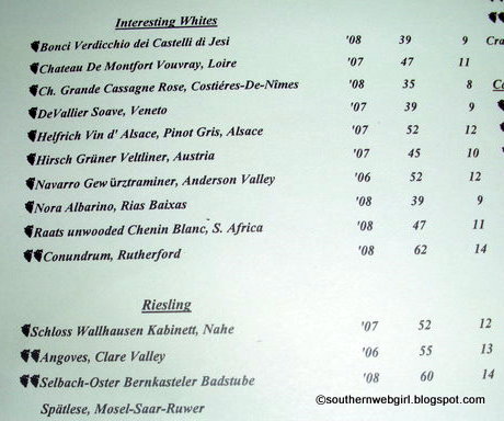 So we perused the regular wine list. I wanted a sweeter white, and Brian wanted a Merlot.