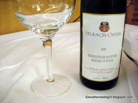 I tried the French Chateau de Monfort Vouvray and the German Selbach-Oster Riesling. Both were wonderful, but I ultimately enjoyed a full glass of the Riesling.