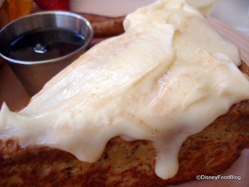 This stuff pretty much speaks for itself. The Cinnamon Roll French Toast came frosting-less, with a cup of cream cheese frosting and a cup of syrup on the side. The plating itself was gorgeous — the prefect start to a Disneyland day — but once you added that frosting, it quickly morphed into one of the best things I’ve ever eaten.