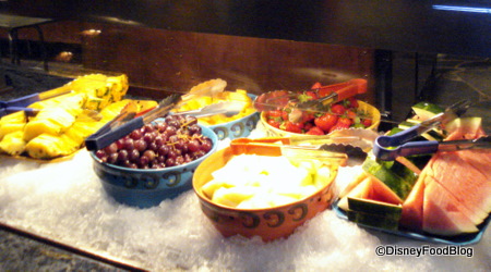 Try the variations of hummus on the buffet at Boma. I really enjoyed the black bean version. Many of the foods at Boma, like the couscous and fufu (a sort of sweet potato casserole), are high in fiber and grain and great choices. They’ll keep you feeling fuller longer, too. For dessert, try some of the great fresh fruits. For South Beachers on phases 2 or 3, you can even enjoy some of the exotic African wine selections.