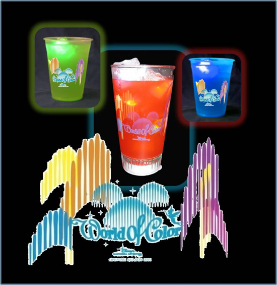 Spectrum Splash: Beverages in light-up souvenir glasses with a colorful choice of flavors –- strawberry red, blueberry blue, or sour Granny Smith apple green.
