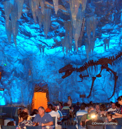 Our server was very professional but running his legs off. He did manage to refill our iced teas promptly, and we don’t blame him for the food quality (I could have sent the soup back to be reheated, but he just seemed so overworked). Our bill was about $78.00 for the three of us. So it was fun once, and dino fans would love it, I think, but it doesn’t offer much incentive to eat here again, when there are better places on property for the same or less money.