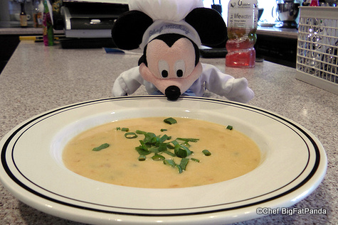 I realize it’s summer and soup might not initially sound like a good idea, but it’s one of my favorite things to eat. With all the hoopla over the Epcot International Food and Wine Festival preview, I remembered how much I loved that Canadian Cheddar Cheese Soup over at Canada’s Le Cellier restaurant. As I re-imagined the velvety, creamy, cheesy goodness and bacon overtones, the whole summer soup argument was over. Soup won! 🙂