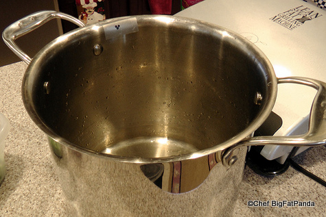 A non-reactive pot is simply one that will not react with acids. Glass or stainless steel, as I used, is best. A non-damaged nonstick coated pot could be used with little interference if nothing else is available.