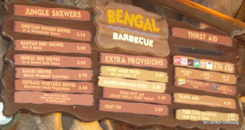 Luckily, Bengal Barbecue food is great for quick eating. If you’ve got a fastpass opening up or you want to maximize your ride time in the parks, this is a great spot to eat-and-run. But don’t run too fast; those are skewers you’re carrying.