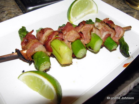 One thing we didn’t order and subsequently regret not tasting are the bacon-wrapped asparagus skewers, or “safari skewers.” Here’s a pic from our awesome friend Lynette!! She says each piece is individually wrapped with bacon. I think the words she used to describe them were, “smokey deliciousness!”