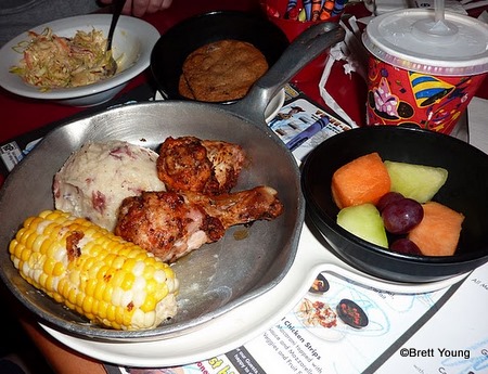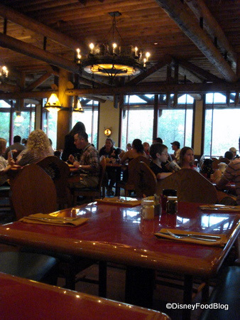 My very pregnant wife, DD9, DD6, DS3, and favorite family babysitter all ate here for the first time back in February 2010. We all had a blast! My wife enjoyed the chicken penne pasta and our babysitter enjoyed the trout. The rest of us had the skillet, which was enjoyable albeit way too much food. I will agree that the food was good overall but it doesn’t amaze. What really makes this place excellent is the fun atmosphere! (The ambiance of the Wilderness Lodge helps out, too.)
