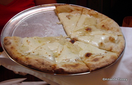 The other fan favorite was the Quattro Formaggi or Four Cheese. This is a sauceless pizza topped with mozzarella, parmesan, fontina and provolone cheeses and seasoned with luscious garlic.