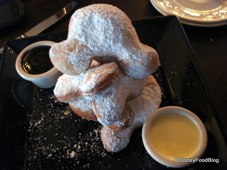 When he came back to ask if there was anything else I would like, I ordered more coffee and later told him that I thought I’d like to order a dessert, which at the time were two types of dessert crepes and the Mickey beignets. I said I’d pass on the crepes and to bring me the beignets.