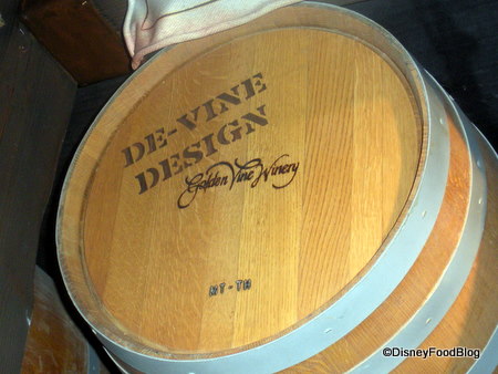 The rest of the barrels display more puns having to do with wine, vineyards, imagineering, California, and concept development — all the things that are supposed to be a part of the themeing here in the Blue Sky Cellar!