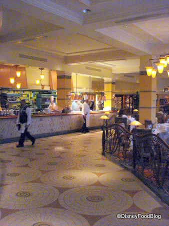 Located in the Grand Floridian Resort and Spa, tucked up into the corner between Mizner’s Lounge and Victoria & Albert’s, Citricos looks like a giant living room. In fact, you might mistake it for a seating/lounge area for Victoria & Albert’s until you realize that there is actually a kitchen back there!