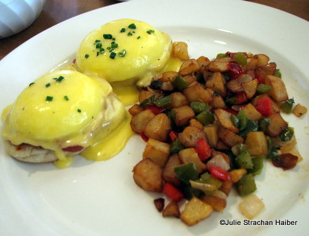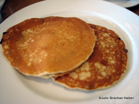 Breakfast diners have the option of an a la carte menu, or an all you can eat buffet. On this particular occasion, we opted for the a la carte menu. I indulged in a sweet breakfast of Buttermilk Chocolate Chip pancakes, while my husband, Rory, enjoyed the unusual Eggs Benedict offering, made with Prosciutto!