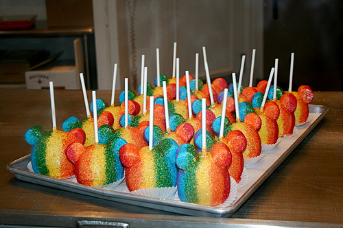 These World of Color rainbow apples are new to Disneyland, commemorating the brand new nightly water and color extravaganza! Photographer: Kierstin
