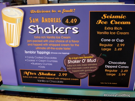 Never really that impressed with the San Andreas shakes. When I wanted a nice chocolaty cool down at California Adventure I would always go with the Make Mine Mocha from Schmoozies over in the Back Lot area. Sooooo good!!! 🙂