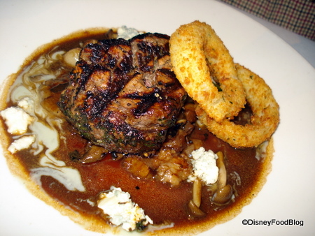 Of the two dishes, the Filet was the winner, but only because Short Rib always seems overdone to me; plus, I think I was jealous of the Mine Shaft Blue Cheese Butter and onion rings (!!) on my husband’s plate.
