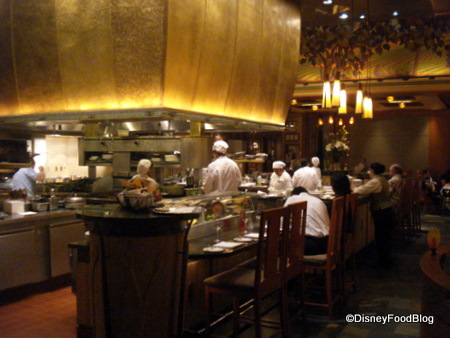 The style of the restaurant is similar to that of the Grand Californian — warm, muted tones fill out the craftsman style, with light woods and an open floor plan. The massive windows look out onto a lovely patio and wooded area, so the feeling of seclusion compliments the openness of the restaurant itself.