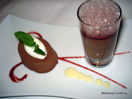 Alas, my original dessert, the Truffle Cake, was not as much of a winner as I’d hoped. The milk chocolate sauce was interesting and I liked the presentation, but there wasn’t as much of a wow factor there.
