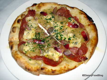 Looking back at what we ordered, it’s clear that we thought we were both ordering for two! We started with the Signature Pizzetta, featuring “La Quercia” Smoked American Prosciutto, Red Flame Grapes (I love it when they put grapes on pizzas), Caramelized Onions, & Cambozola Cheese. We chose this, I think, because we’d just honeymooned in Hawai’i and found an incredible restaurant, Bar Acuda, that always offered a different pizzetta and we loved every one! Luckily, our passion for the pizzetta paid off, because this one was delicious. The smokey cheese and savory prosciutto paired with the sweet onions and crunchy grapes was just about perfect.