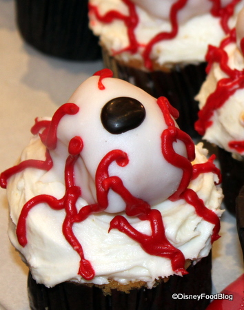 We asked about the eyeball and ghost cupcakes and were told that they were made with marshmallows and fondant to create the “bulge.”