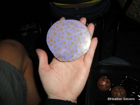My favorite treat in the box was a raspberry stuffed sugar cookie with a coating of lavender colored chocolate and golden stars on the bottom. It was so pretty and tasted great too. Other desserts included a divine macaroon, a mini cheesecake, chocolate lava cake, a lemon tart, and some chocolate truffles.