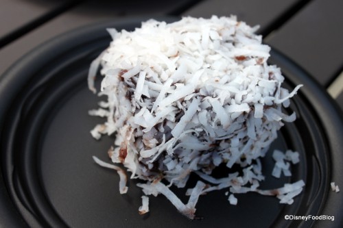 We popped over to the Australia booth to check out the newest addition — Lamington! This heavy sponge cake (tastes like pound cake) decked out in chocolate with coconut shavings is deeeeeeeeee-licious! Check out more photos, the full menu, and pricing on our Australia Booth Page!