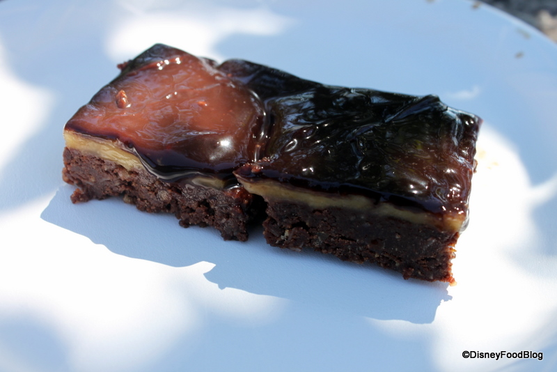 One of our favorites was the chicken chipotle sausage with corn polenta; the addition of the peppers makes this a spicy and delicious dish — possibly better than what you get in the restaurant! Also, the sweet Maple glaze on the salmon is wonderful. Of course, one of my favorite items from the booth was the ice wine; my husband didn’t even get to try a drop! And the Nanaimo bar — a new item on the menu this year (and not found in the restaurant) is a decent nod to Canadian favorites. While the Nanaimo bars my mom makes are better, this is a nice, sweet way to end your tour of Canada. You can see more pictures, the full menu, and prices on our Canada Booth Page!