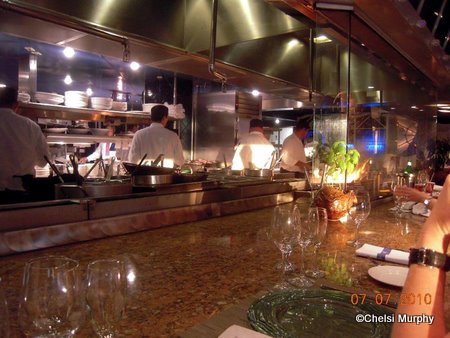 The Flying Fish Cafe is a beautiful and whimsically decorated restaurant overlooking the busy hustle and bustle of the Boardwalk. The Chef’s Counter is to your left as you walk in and gives you an up close and personal view of Chef Keating and his crew preparing the night’s menu.
