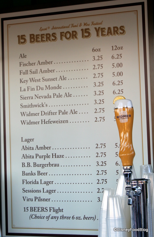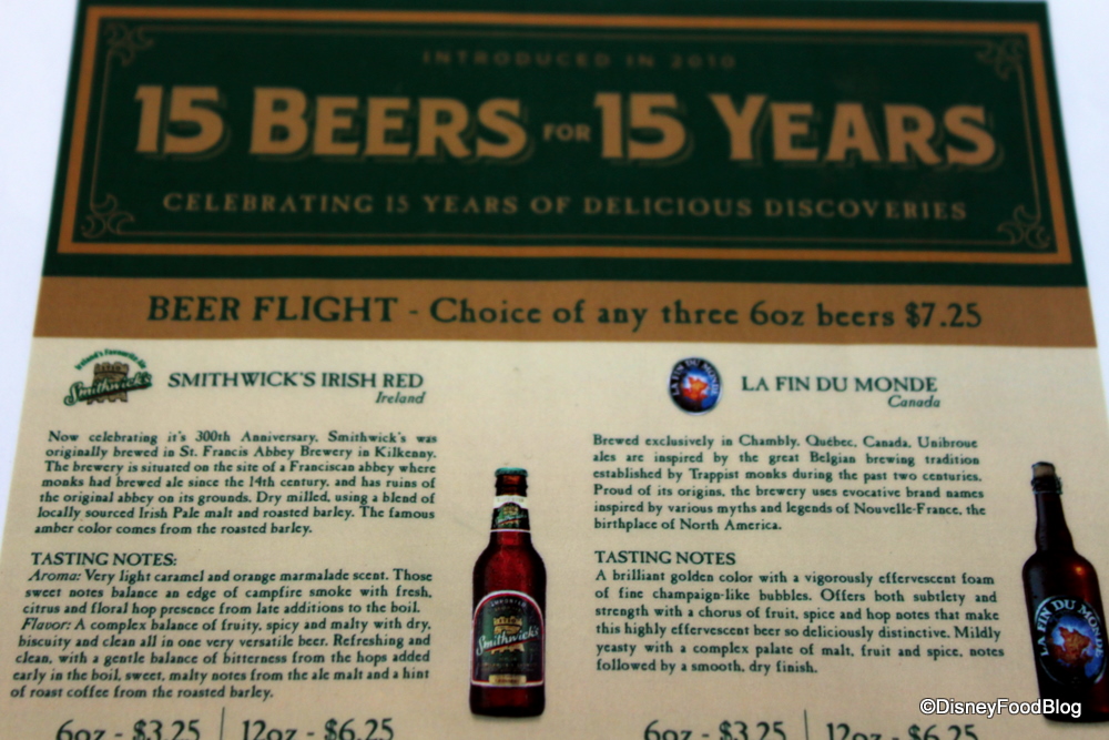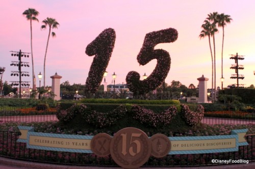 Another brand new kiosk, 15 Beers for 15 Years, was added at the entrance to the World Showcase Promenade this year to celebrate the Epcot Food and Wine Festival‘s 15th anniversary! Across from the booth is the giant “15” planter, so there’s little question as to the significance of the number!