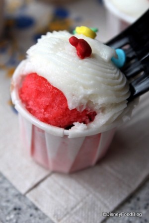 And if it’s just you and your spouse, six mini-cupcakes is a perfect amount to satisfy a sweet-tooth without making your belly feel like it’s full of lead! (Meaning you can still use your Rock N Roller Coaster fast passes without feeling queasy after this snack!)