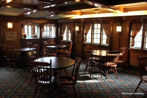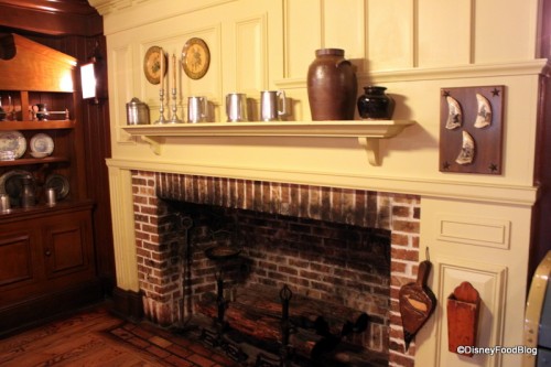 There are two dining areas, one upstairs and the main room downstairs. The upstairs for the most part is quieter, probably because many guests do not know it’s there! Like many other counter-service eateries, the dining areas are broken into smaller dining rooms offering a variety of different alcoves and seating areas. Both rooms have nice large fireplaces to give it even more of a colonial feel.