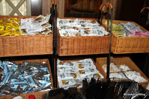 There are plenty of condiment locations around the Harbour House as well, though here you’ll find dispensers of Barbecue Sauce and Honey Mustard along with the ketchup and mayo. Packets of tartar sauce; mustard; and Olive Oil Vinaigrette, Blue Cheese, and Ranch salad dressing are also available.