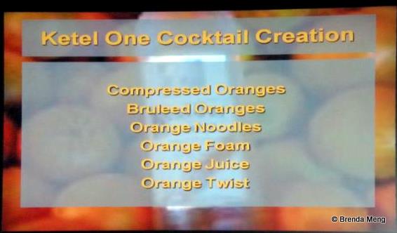 The final cocktail was a variation of the Burnt Orange that Bluezoo offers. Each guest was provided a small bottle of Ketel One Orange Vodka, and we then wound our way through a cocktail assembly line at the front of the room where glasses, ice, orange juice, and orange garnishes were waiting.