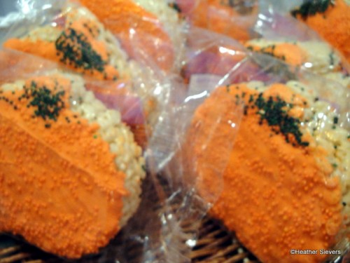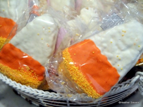 Our personal favorite is the candy corn shaped rice crispy treat. It’s soft and gooey; with a top coat of colored chocolate and well, just plain divine.